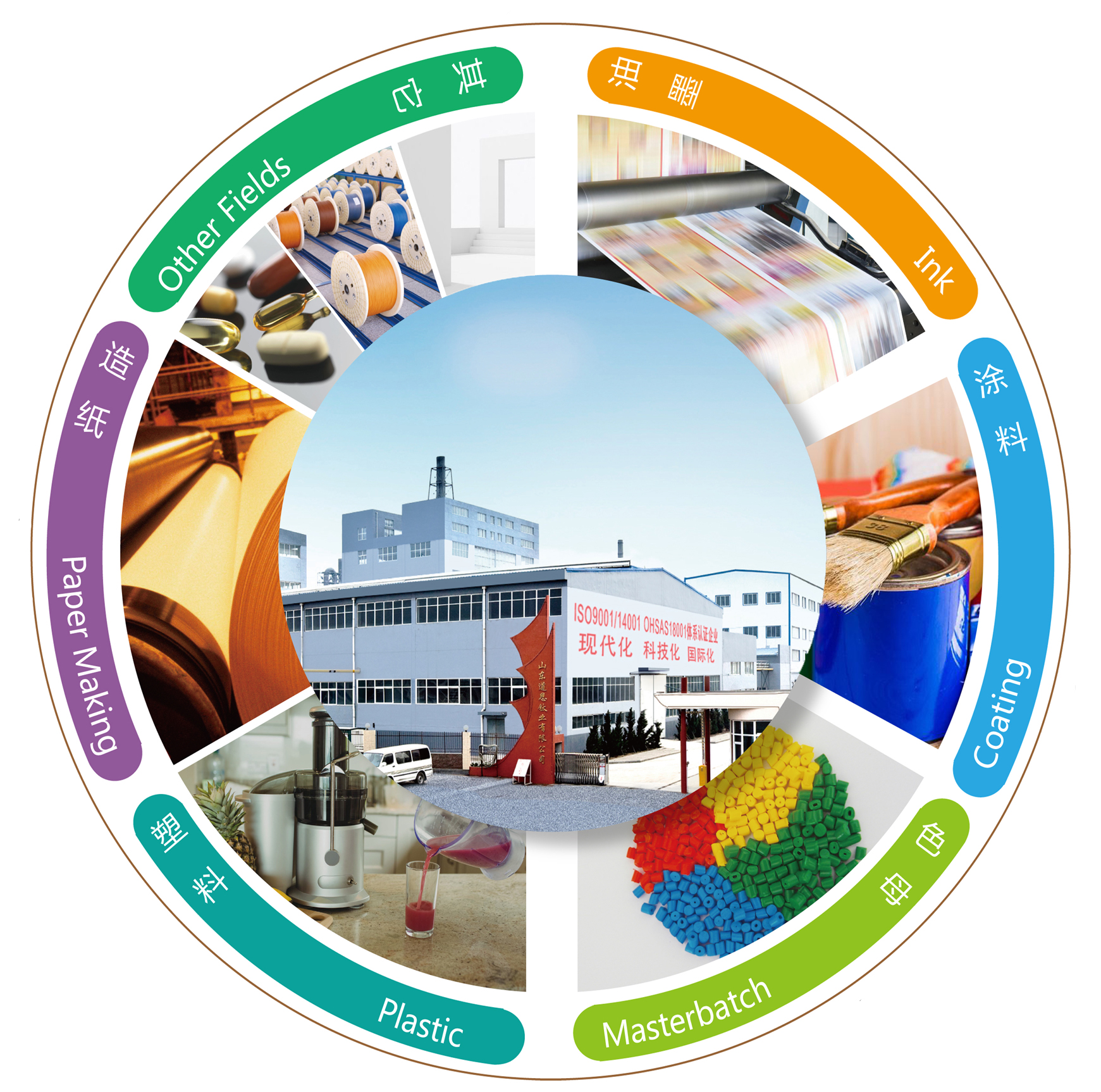 具有较高的遮盖力,较高的分散性,低吸油量等特性,主要应用于各种油墨领域