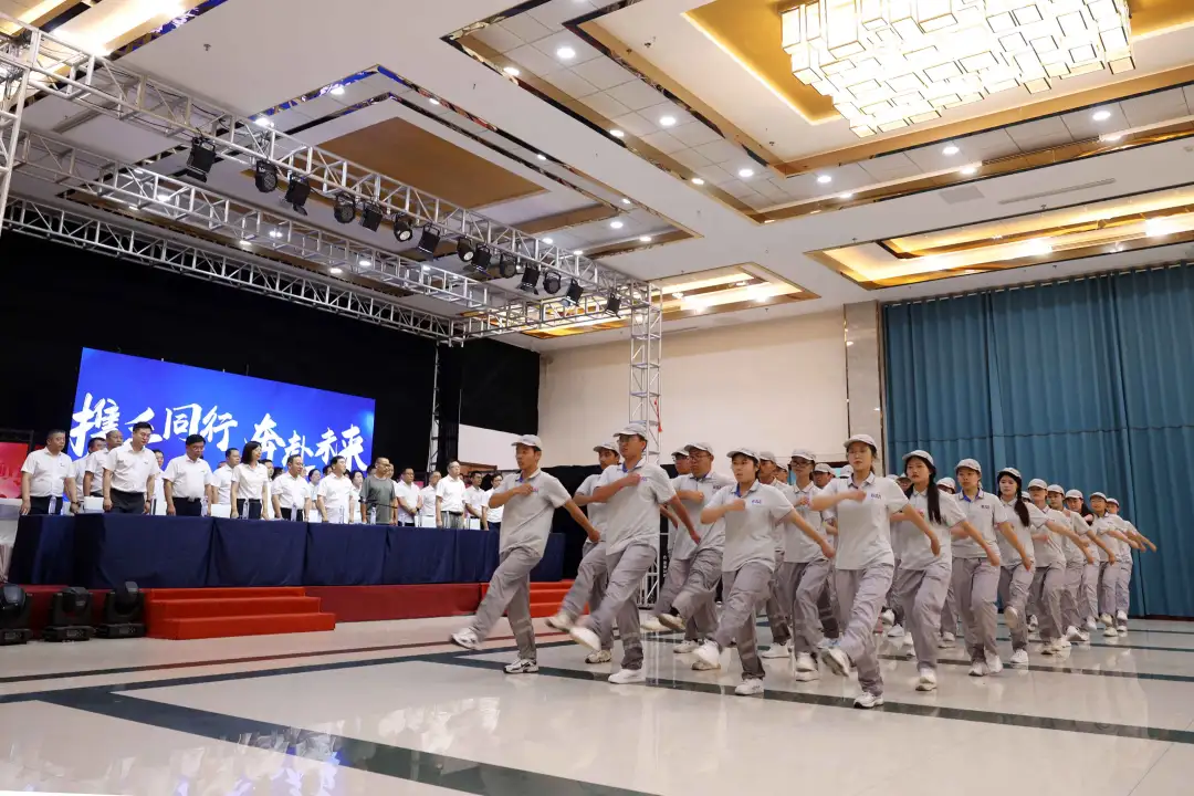 “风在吼,马在叫,黄河在咆哮……万山丛中,抗日英雄真不少!青纱帐里,游击健儿逞英豪!”7月24日晚,由大学生新员工合唱的《保卫黄河》,把主题为“携手同行,奔赴未来”的好博集团2024届大学生入职晚宴推向高潮。这标志着170名新入职大学生历经20余天的训练和学习,圆满完成各项集训任务,奔赴全国各地的工作岗位,以青春奋斗之姿奔赴更加美好的未来。