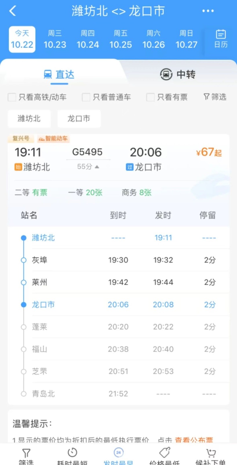 潍烟高铁站点设置有昌邑、灰埠、莱州、招远、龙口市、蓬莱、烟台西、福山、芝罘 9 座车站,其中灰埠、莱州、招远、福山为新建车站,其余为既有车站。从运行时间看,潍坊北站至龙口最快55分钟可达;济南东站至龙口最快102分钟可达。