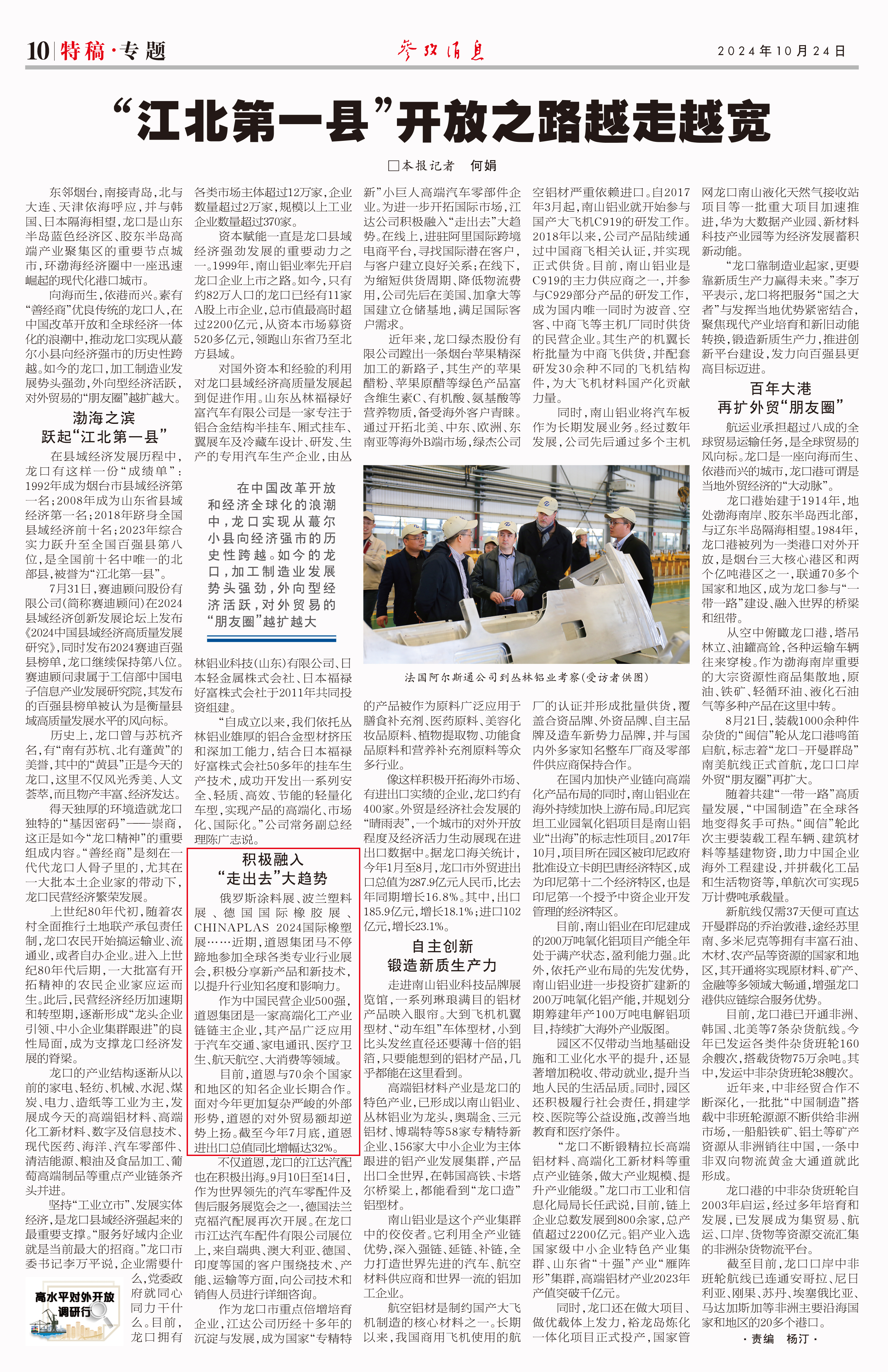10月24日出版的《参考消息》,聚焦“江北第一县”——龙口的“开放之路”,点赞好博集团积极融入“走出去”大趋势,对外贸易额逆势上升,积极参与全球化市场竞争。