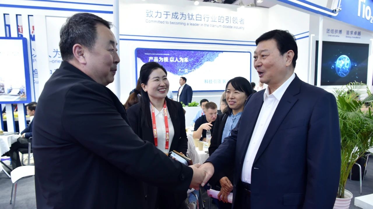 作为好博集团三大产业之一,好博钛产业以钛白粉研发、生产和销售为基础,加快智能化改造项目,上游延伸钛矿资源,确保原材料供给,下游投资纳米磁性材料、磷酸铁锂等项目,同时加大群青的研发、生产及应用。此次展会上,好博钛业公司携带7款牌号的钛白粉,双龙化工公司携带6款牌号的群青参展,吸引了近千名海内外客户的目光。