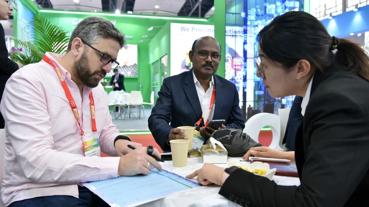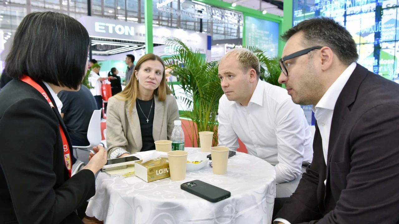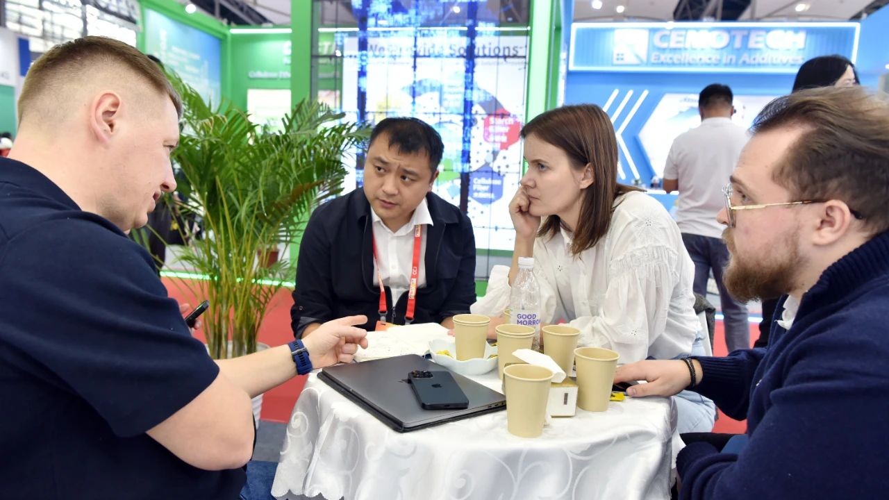 在参展现场,“一蓝一白,蓝白互映”的主题海报格外吸睛,《环保赋能钛精彩》宣传片讲述着好博“清洁生产、绿色发展”的故事,工作人员悉心为新老客户讲解产品性能、应用推广等情况。首日来访的客户不乏洋紫荆、新东方、坂田油墨、天津新宇等知名客户,或技术交流、或约定互访、或索样测试、或深化合作,“对好博产品及服务非常满意,希望加大钛白粉的采购量!”欧洲某客户表示。