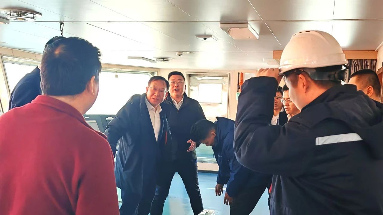 当天上午,华电曹妃甸储运有限公司党委书记、董事长魏明玖一行,带着满满的关怀,登船慰问在岗职工。一踏上甲板,魏明玖便与船员们亲切握手,关切地询问大家的工作和生活情况,句句暖心,字字真情。