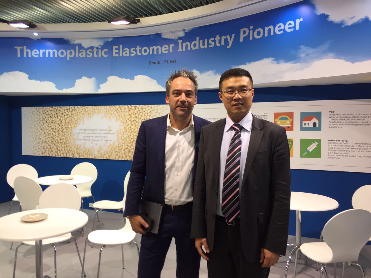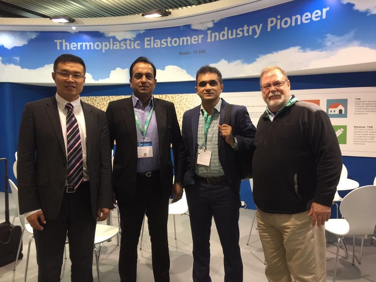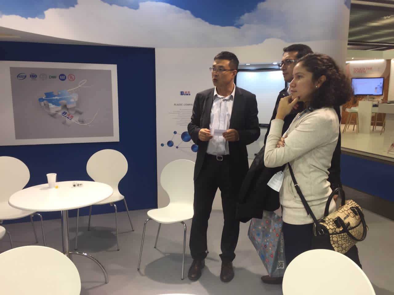 展会上,好博高材公司展示的主要产品有TPV系列,新产品为一体化发泡TPV,很多国际客户对好博高科技含量的产品表示震惊和钦佩,并得到各主流汽车厂家的认可。此外,TPE医用材料、工程塑料的长玻纤增强PP和无味熔喷料也是展示的亮点。美国库博公司全球采购总经理表达了与好博合作的愿望,德国百年企业舍弗勒集团旗下LUK公司前来咨询一体化发泡TPV情况。据统计,参展期间共接待客户116个,有效传播了好博的国际化品牌形象。