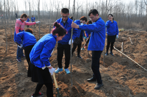 是日上午8时许,参加植树活动的员工们兴致勃勃地拿着工具,赶往植树点。到达现场后,大家迅速行动起来,扶苗、培土、踩实、浇水,团结协作,分工明确,在不到两个小时的时间里,圆满完成了近2000棵法国梧桐树苗的栽种任务。