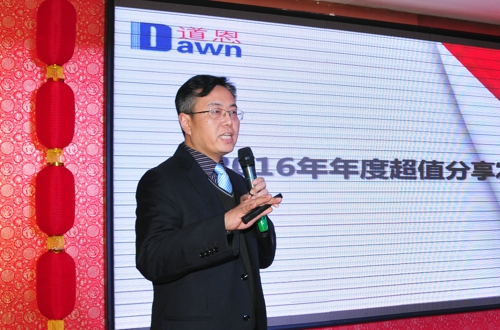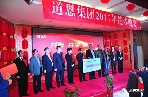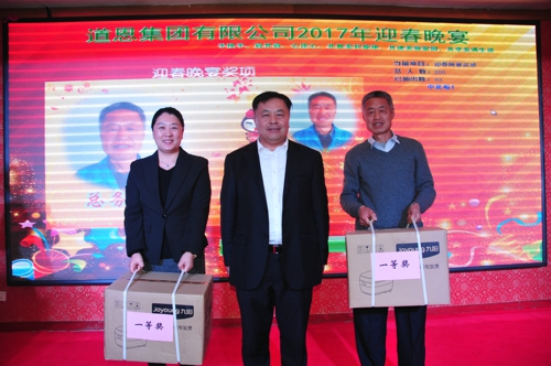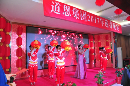 1月18日晚,主题为“共舞·共建·共享——感恩、超越”的好博集团2017年迎春晚宴,在好博湖畔酒店二楼多功能厅隆重举行,集团公司董事长于晓宁、总裁索延辉出席晚宴,正科长以上干部200余人参加晚宴。