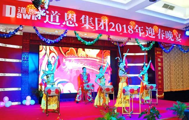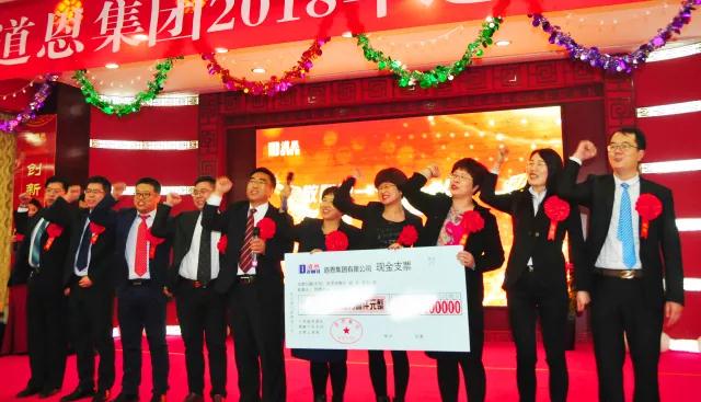 宴会在开场舞《鼓舞新春》中拉开帷幕。晚宴上,大家共同观看了《2018,好博一起出发》专题片,通过视频回首过去,展望未来。好博集团副总裁王永放讲解了2017年“超值分享核算办法”,获得超值分享的一、二、三类企业依次登台,以高昂的士气展示团队文化,诠释超值分享激励机制带来的喜人变化,彰显好博人崭新的精神风貌。好博集团领导为获奖单位颁发奖金,并合影留念。
