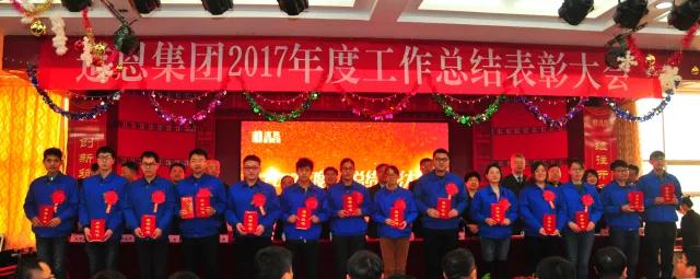会议隆重表彰了2017年度做出突出贡献的先进集体、先进个人,好博集团领导向他们颁发了荣誉证书和奖金。