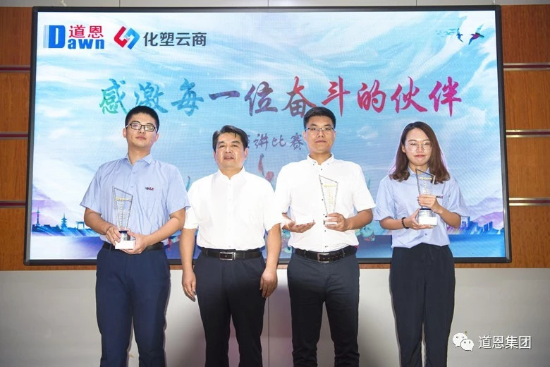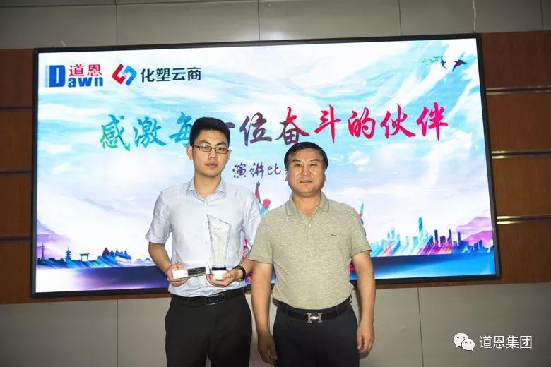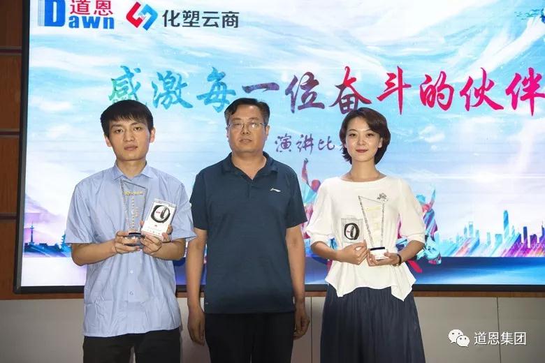 此次比赛特邀集团公司领导及营销中心、化塑云商领导担任评委,从演讲内容、语言表达、姿态神情、仪表形象等方面进行现场打分,充分保证了比赛结果的公平、公正、公开。17名选手表现优异,经过激烈角逐,综合管理部孙董明荣获一等奖,此外还评出了二等奖2名,三等奖3名,主要评委上台为获奖者颁奖并合影留念。