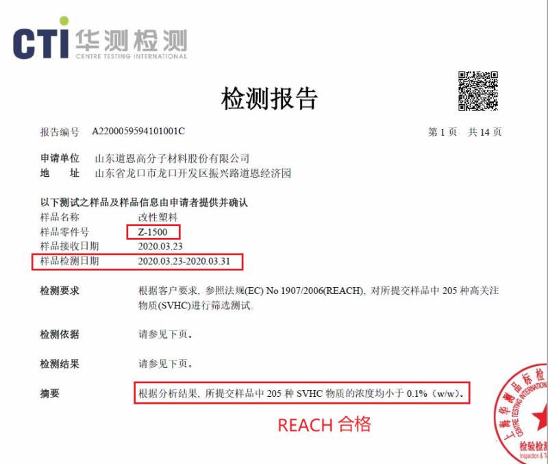 “经过有害物质注册、评估、检验后,在测试清单中205项有害物质含量中均符合REACH的标准。这一突破性成果表明,好博的产品在化学物质指标上达到了欧盟市场的要求。”田洪池总经理说,此举将有助于拓展国际市场,提升好博品牌国际化水平。