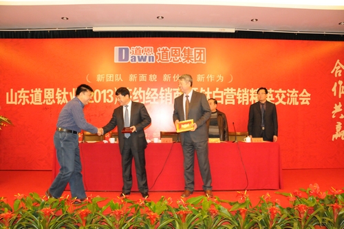 好博钛业公司在会上介绍了钛白粉环保型生产工艺情况,共同分享了产品生产技术。清华大学教授崔爱莉介绍了清华大学与好博钛业公司合作研发情况。会上,好博钛业公司与各签约经销商举行了隆重的签名授牌仪式。
