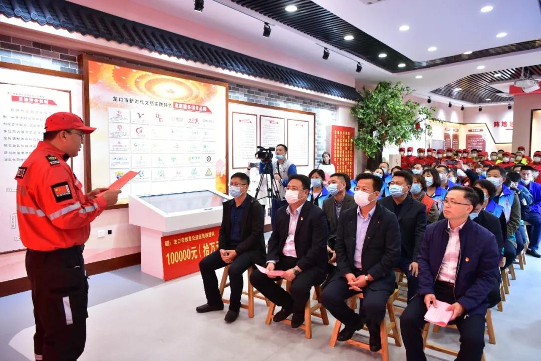 10月20日,在龙口市新时代文明实践中心,好博集团向龙口市蛟龙公益应急救援队捐赠10万元爱心款,表达对志愿服务和公益事业的支持,以实际行动助力应急救援工作,惠及更多处于危险和困境中的人们。