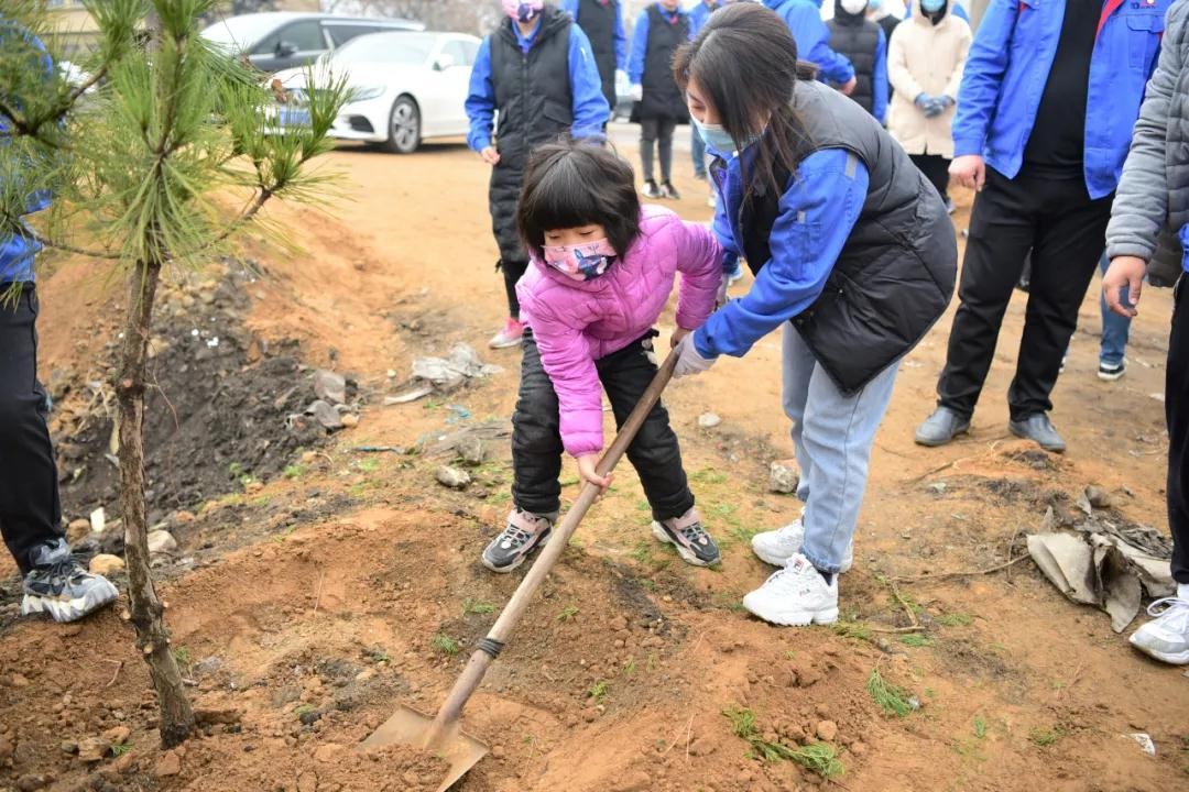 上午8时许,在位于龙口市新材料新能源产业园北皂路的植树地点,数百名干部员工积极投身植树活动。于晓宁董事长与大家一起拿起铁锨、挖坑植苗,铲土入坑、培实新土、修整树盆,活动现场一派热火朝天的劳动景象。可喜的是,植树队伍中出现了“小好博人”,他们在大人的指导下拿起铲子为树苗培新土,从小培养环保意识和生态理念。