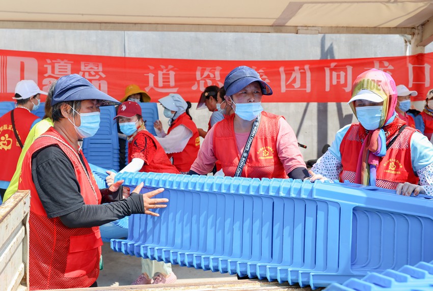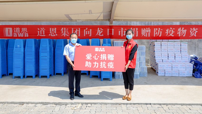 8月6日中午,好博集团常务副总裁肖辉将防疫物资捐献给龙口市。“这次好博捐赠的遮阳棚、塑料凳和矿泉水,都是防疫一线急需的物资。”前来负责接收和发放防疫物资的龙口市妇联工作人员李幸说,“好人之城,好人同行。爱心企业的温暖行动,更坚定了好博战胜疫情的决心和信心。”