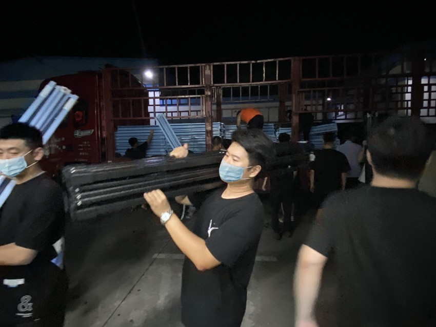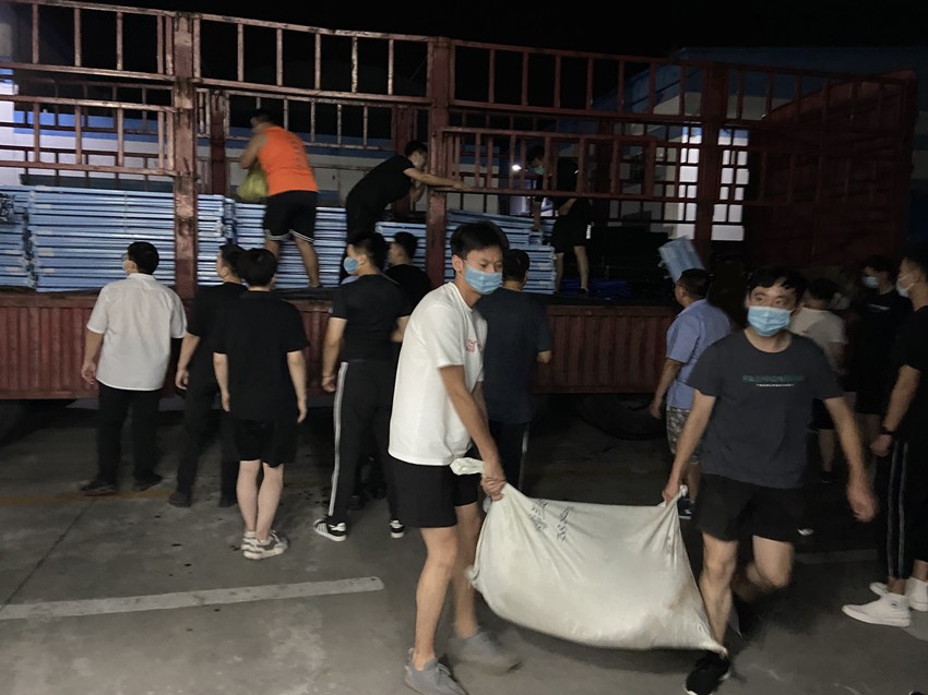 8月5日晚22时,运载遮阳棚的货车驶入好博集团总部驻地。一声号令,行政管理部与好博化学干部员工紧急集结,加班加点接卸防疫物资。黑夜中,每一个脚步都坚实有力,每一次搬运都传递着爱心。大家争分夺秒,再一次用行动诠释了“好博速度”。