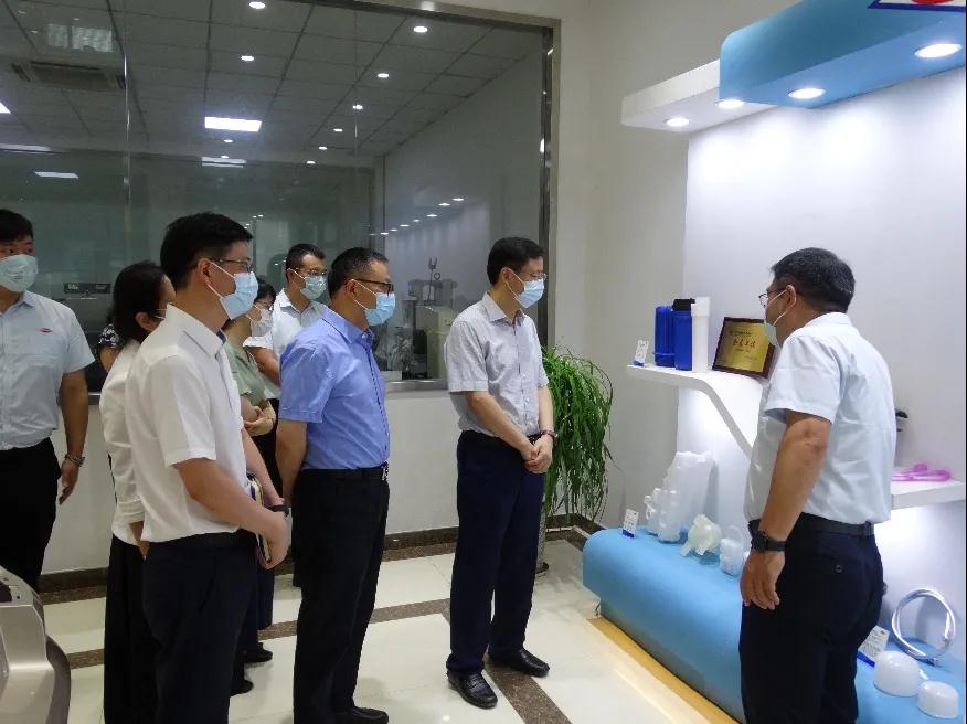 “产品出口情况怎样?占比有多少?”张建明副主任关切地询问。杨书海总经理如数家珍,“上半年,公司出口量占销售收入15.6%。其中涉疫物资出口量占总量三分之一,主要为美洲、亚洲、非洲、欧洲等近20个国家发送了口罩布聚丙烯熔喷专用料,为全球抗疫贡献了力量。”