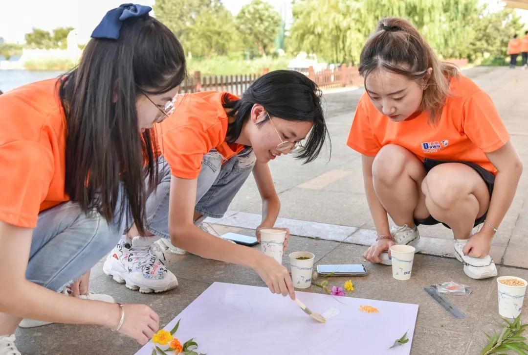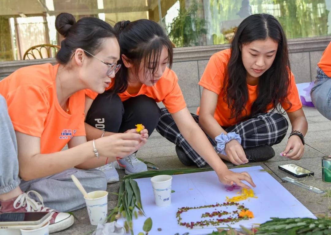 激昂青春志,共筑中国梦。今年恰逢中国共产党百年华诞,大学生们通过搜集树叶、豆子、贝壳等材料,手绘特色主题标语,弘爱党爱国之心,立青春鸿鹄之志,展示了新时代青年学子的新风貌和新力量。大学生们纷纷表示,心有所定、学有所成,将来为社会发展贡献青春和力量。临近活动结束之际,同学们在好博湖畔齐声喊响:“快乐起航,超越梦想”。这声音中洋溢着青春,洋溢着激情,更洋溢着对未来大学生活的憧憬与向往。