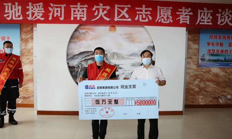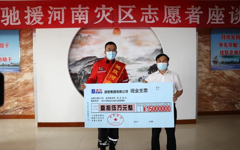 9月5日上午,龙口市在行政中心召开慰问驰援河南灾区志愿者座谈会,市领导吕波、赵树杰、高经宇,市委宣传部、市应急管理局、市民政局,以及龙口市河南商会、龙口市蛟龙公益应急救援队、今日龙口慈善义工队负责人参加会议。好博集团董事长、总裁于晓宁代表企业捐赠20万元,对两支志愿者队伍表示慰问,以实际行动支持志愿服务和公益事业。