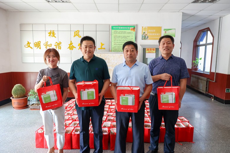 桃李飘香,师恩难忘。第37个教师节来临之际,好博集团董事办公室主任张晓艳、园区管理部副部长孙少杰到龙口市新港路学校、北皂学校、北皂前村幼儿园、龙港街道孙家小学、兴隆庄幼儿园等园校进行走访慰问,为300多名教师送去了好博定制餐具和口罩礼盒,传递了企业的浓浓祝福和深切关怀。