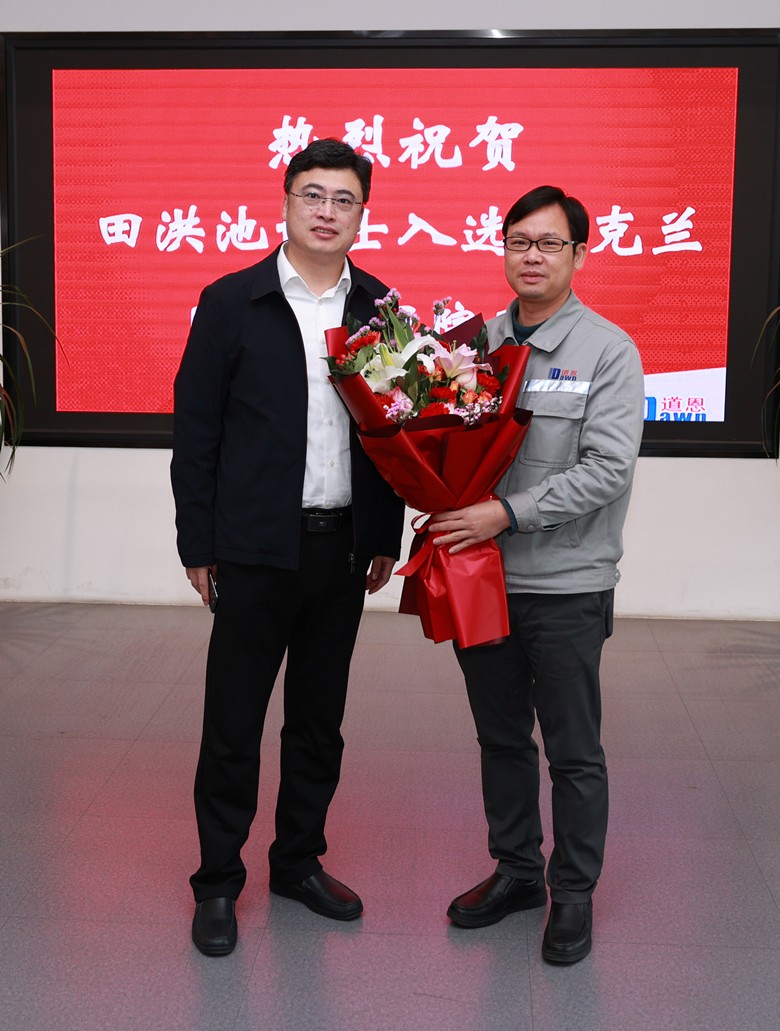 12月8日上午,龙口市委常委、组织部部长姜利春走进好博集团,祝好博股份总经理田洪池博士当选乌克兰国家工程院外籍院士,勉励田洪池院士继续发挥科研领军人才作用,勇于创新、勇攀高峰,多出成果、多育人才,为全市新旧动能转换和高质量发展做出新的更大贡献。龙口经济开发区党工委副书记王立新,好博集团董事长、总裁于晓宁,常务副总裁肖辉出席活动。