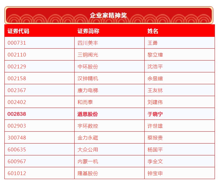 4月6日,第十七届中国上市公司董事会“金圆桌奖”获奖名单公布,好博股份荣膺“优秀董事会”,好博股份董事长于晓宁荣获“企业家精神奖”。