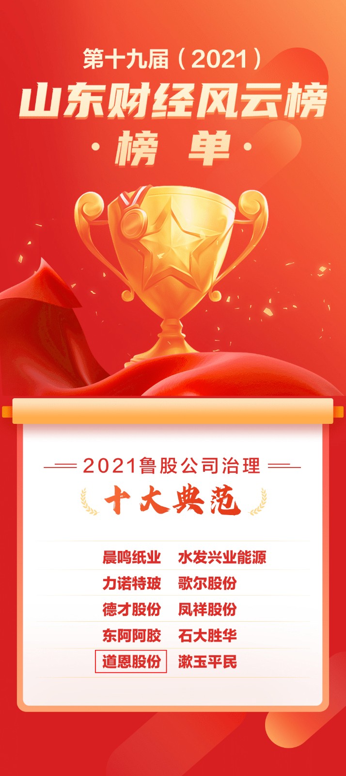 6月28日下午,“奋力走在前——第十九届(2021)山东财经风云榜”颁奖盛典在济南举行。好博股份荣获“2021山东财经风云榜鲁股公司治理十大典范”。