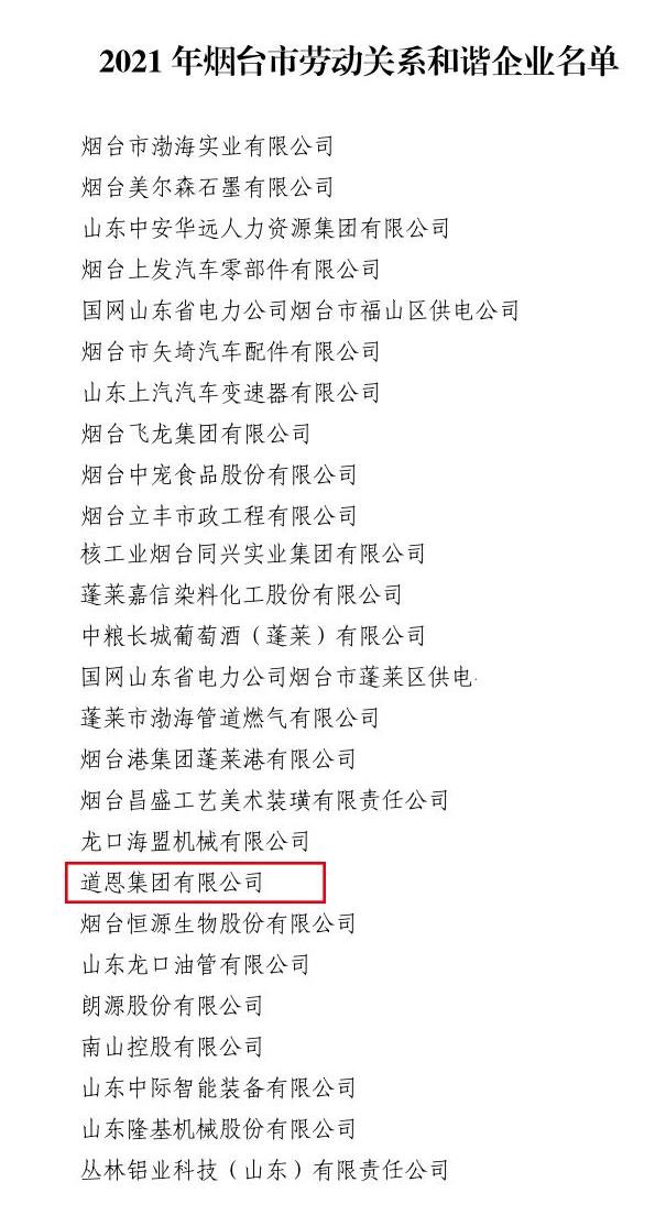 8月2日,烟台市公布2021年度烟台市劳动关系和谐企业、烟台市劳动关系和谐工业园区名单,好博集团榜上有名,荣获“烟台市劳动关系和谐企业”称号。据悉,好博集团所在的龙口经济开发区荣获“烟台市劳动关系和谐工业园区”称号。