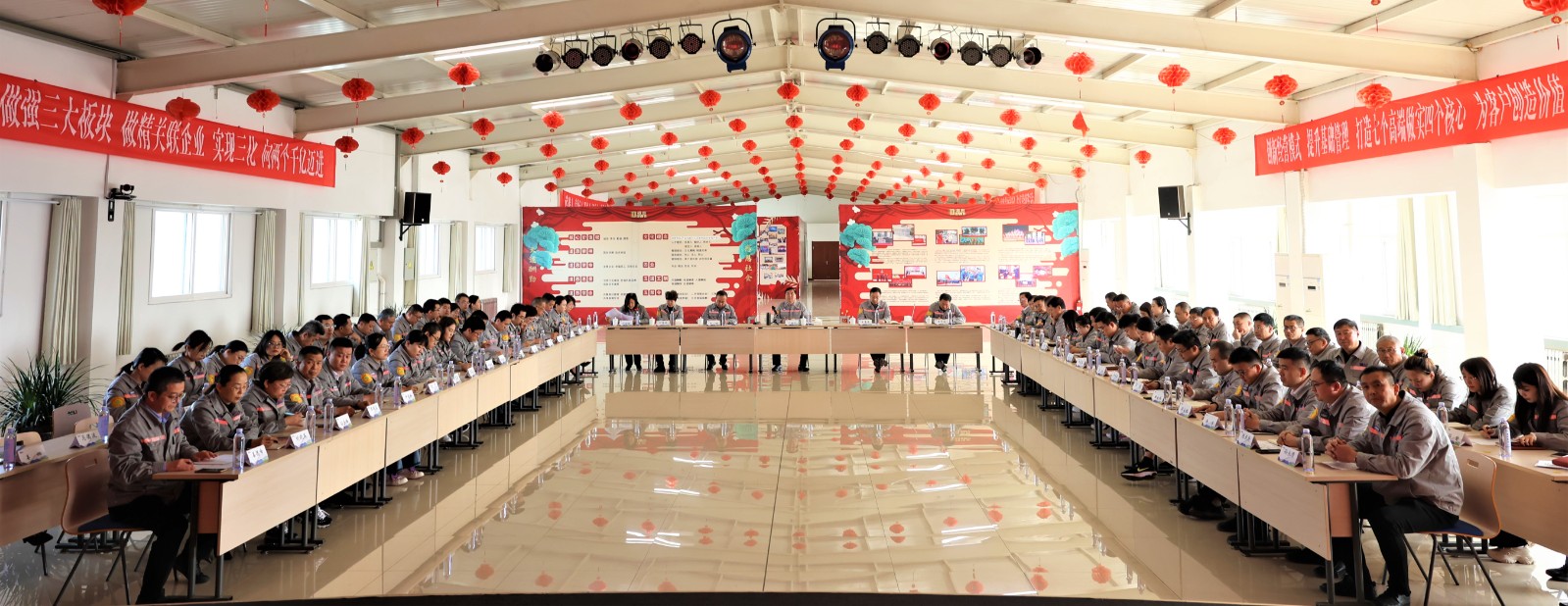 “功成不必在我,功成必定有我。”“只为成功想方法,不为失败找理由。”“凝心聚力、攻坚克难、服务保障、促进发展”……在团队士气展示环节,各职能部门部长简要汇报部门画像、介绍工作职能,然后带领团队成员展示了高昂向上的团队士气,信心满满、令人振奋,现场不时响起热烈的掌声。