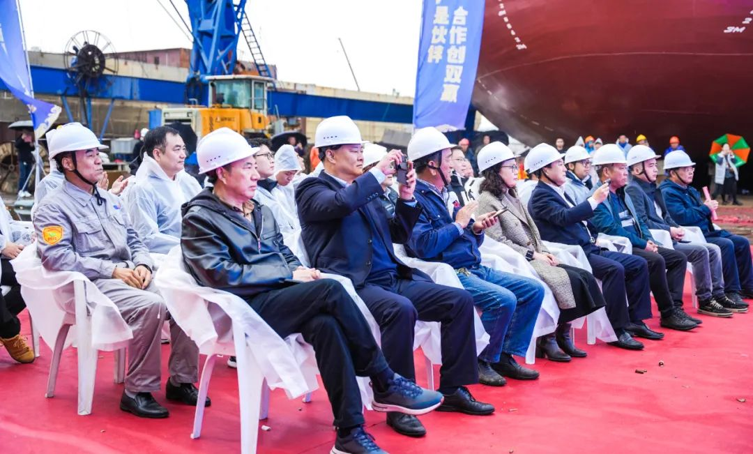活动现场,彩旗招展。冒雨参加仪式的领导和嘉宾共同观看了视频短片,回顾了“好博167”轮是怎样建成的。